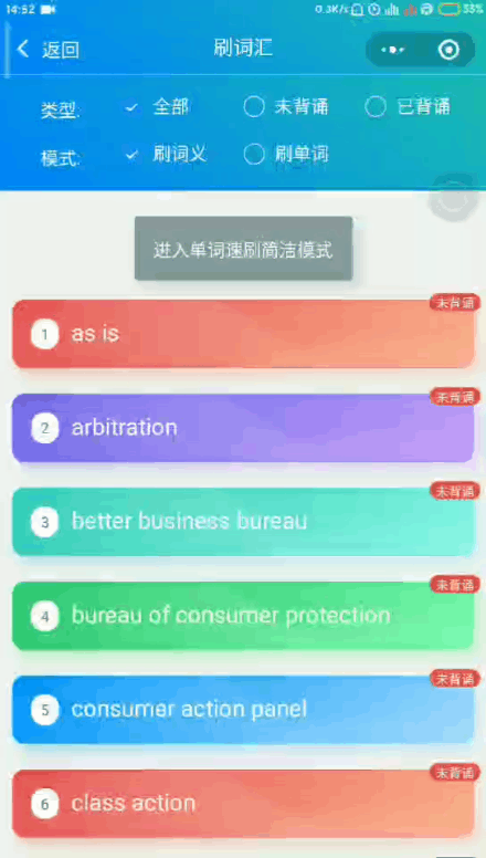 除过刷词义(看着单词记意思)和刷单词(看着意思记单词)之外,生词本也全程出现在背单词的界面之中,遇到任何困难单词你都可以将其加入,方便日后复习巩固。